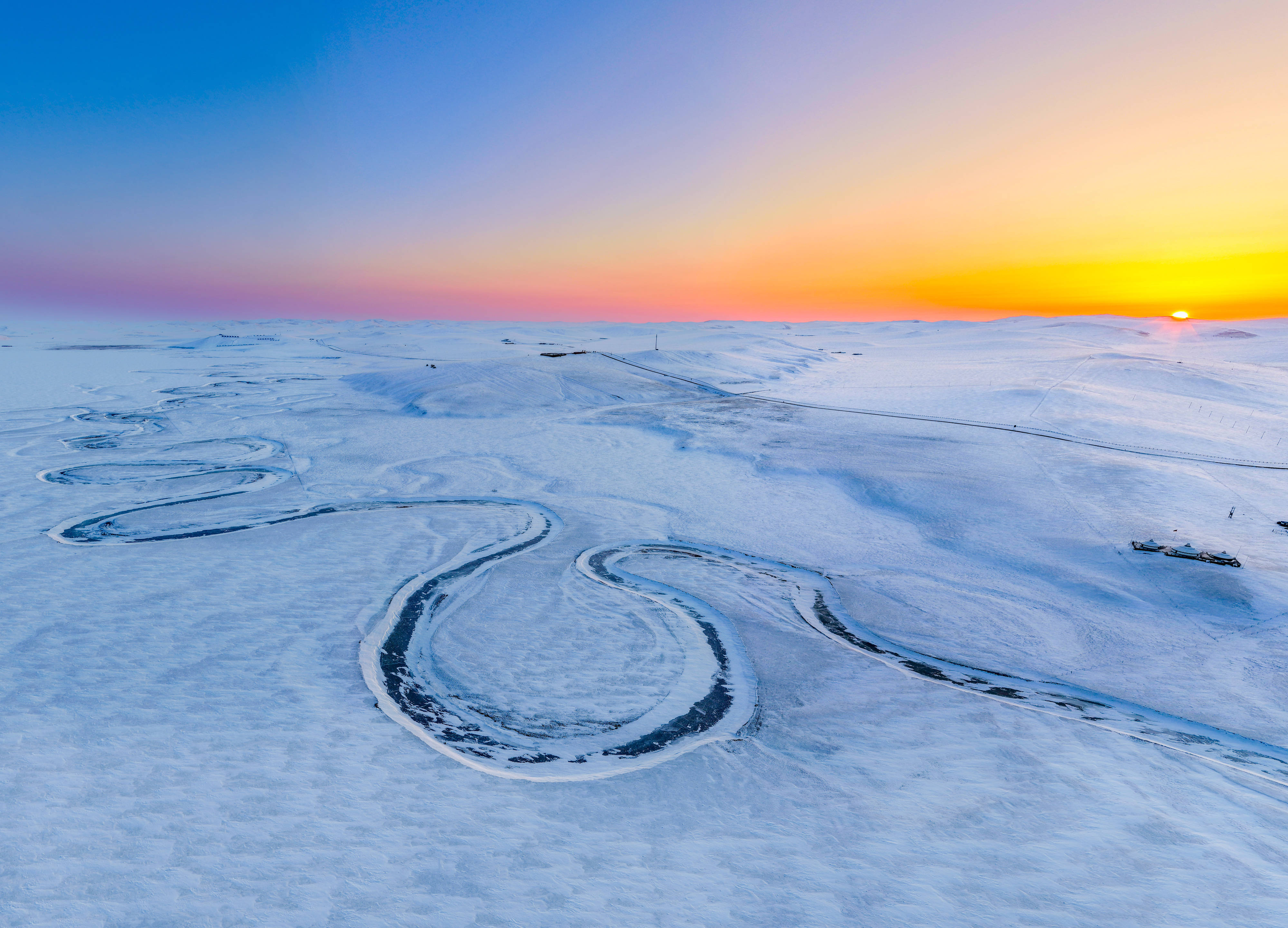 这是12月3日在内蒙古呼伦贝尔市陈巴尔虎旗拍摄的呼伦贝尔大草原日出风光(无人机照片)。新华社记者 马金瑞 摄记者从内蒙古自治区文化和旅游厅了解到,今年冬季,内蒙古统筹全区冰雪资源,以“一季一主题,一地一特色”为布局,推出5项自治区级重点活动、11项盟市级重点活动和143项各地特色活动,以及48项文旅体融合赛事,并配套45条冬季旅游主题线路,构建起“月月有精彩、全域皆可游”的冰雪旅游新格局。