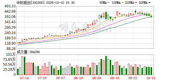 证券时报·数据宝统计显示,中际旭创今日收盘价为390.00元,下跌2.21%,日换手率为3.48%,成交额为151.67亿元,全天主力资金净流出12.10亿元,近5日该股累计下跌10.26%,近5日资金合计净流出43.58亿元。
